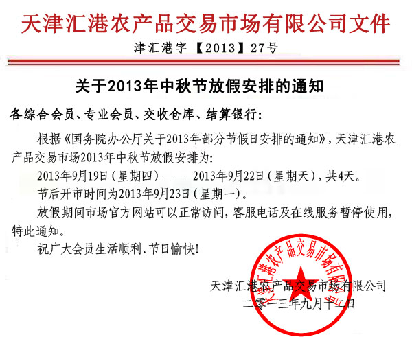 上一條:關(guān)于天津匯港農(nóng)產(chǎn)品交易市場出入金時(shí)間調(diào)整的公告[ 2013-9-2 ] 下一條:關(guān)于2013年國慶節(jié)放假安排的通知[ 2013-9-24 ] |